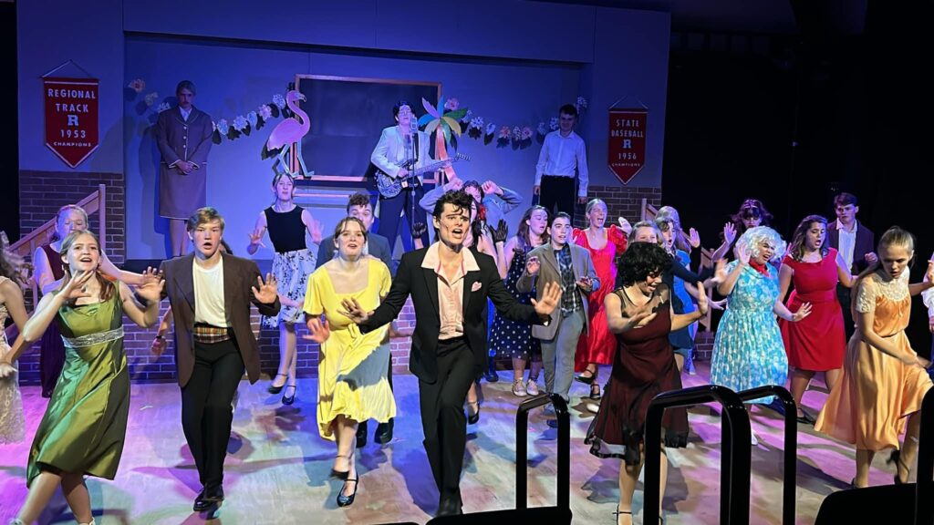 Miss Lynch…………………………………………………………………………………….Julia Steen Patty Simcox…………………………………………………………………………….Hannah Bebus Eugene Florczyk……………………………………………………………………Hayden Counters Jan…………………………………………………………………………………………..Ruby Saindon Marty………………………………………………………………………………………………Eva Funk Betty Rizzo……………………………………………………………………………….Olivia Olmsted Doody……………………………………………………………………………………….Jacob Nielsen Roger……………………………………………………………………………………………Zack Leflar Kenickie……………………………………………………………………………………………Greg Fix Sonny LaTierrie………………………………………………………………………….Hyde Lambert Frenchy……………………………………………………………………………………….Emma Dorn Sandy Dumbrowski ……………………………………………………………..Kailey Archbold Danny Zuko ……………………………………………………………………………Max Richard Vince Fontaine ………………………………………………………………………….Evan Miller Radio Voice………………………………………………………………………………Taylor Hasling Johnny Casino…………………………………………………………………………Aspen Henning Cha Cha DiGregorio …………………………………………………………………….Nicola Piper Teen Angel………………………………………………………………………………..Hyde Lambert Ensemble ………………………………………..Audrey Baeb, Oliver Bertram, Anna Dasari, Lydia DeGrood, Allie Dillon, Asher Fix, Dava Gagnon, Hailey Grand, Taylor Hasling, Uma Jeanchaiyaphum,Maris Jensen, Hadley Kustermann, Eloise Majeres,Ellie Nielsen, Nicola Piper, Olivia Recker, Elsie Saer, Pepper Smith, Louisa Swenson, Sara Winters